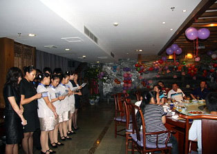 饭店了解到是联想接待北川中学的师生后,不仅免费布置了热闹的现场,还组织服务员们给大家献上了一首励志歌曲。这个意外的节目,让师生们体会到了对于灾区人民无处不在的爱流。