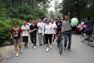 8月8日下午,公司为师生们安排了高校参观。北大、清华都有志愿者们带着大家,北大还特意找到了去年考到北大的北川中学学生申龙(上图中手扶自行车的),大家边走边聊。师生们对于这两个名校有了进一步的了解,也对自己确定心目中的高校,收获了一定的感性认识。